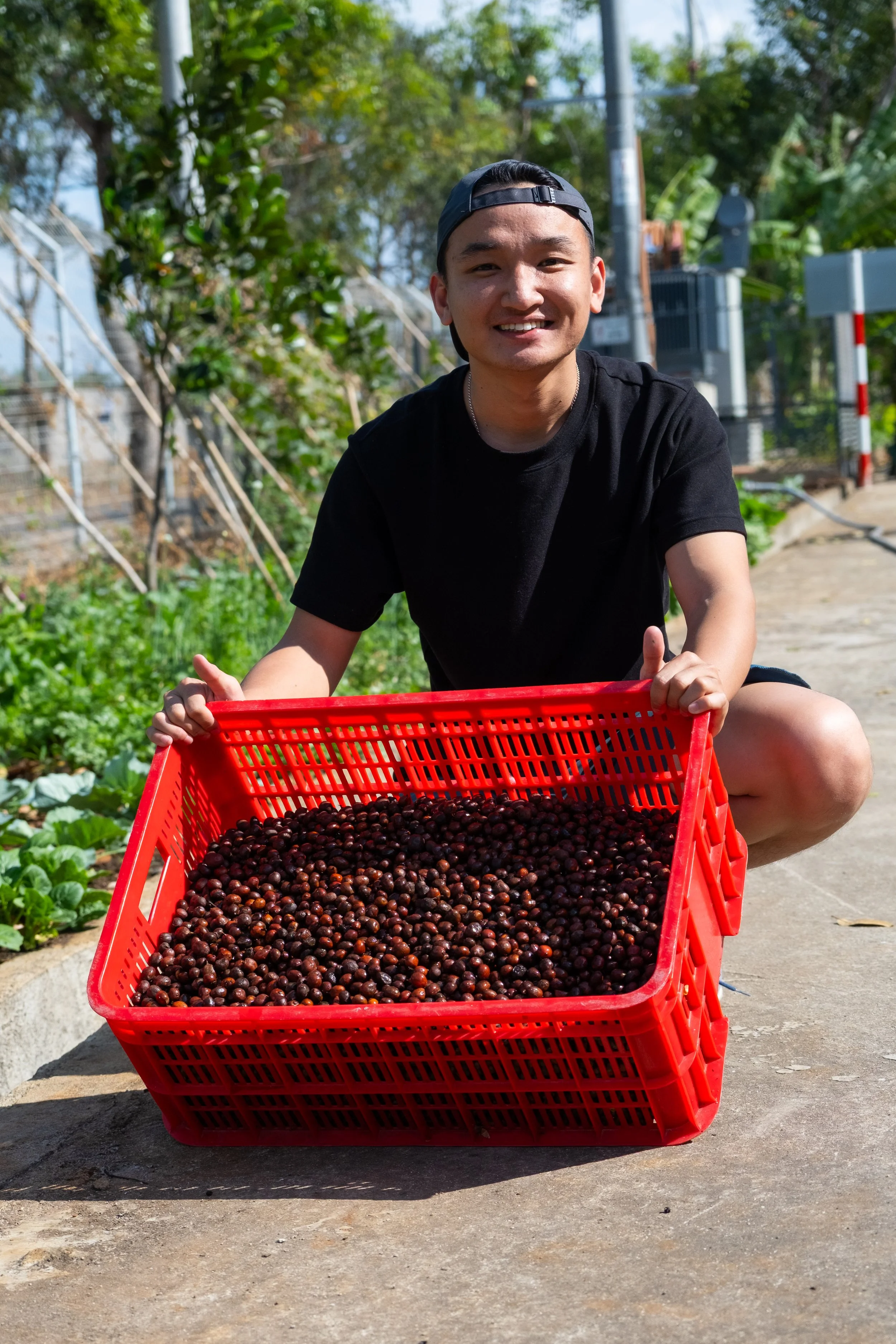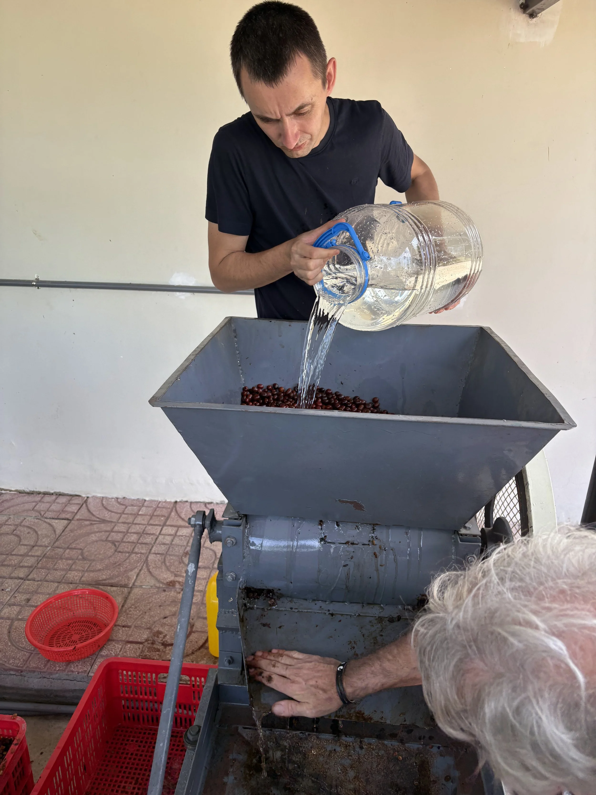 It’s time to move on to the next stop in our journey as we head to the town of Da Lat. This region is famous for cultivating Arabica Coffees. Before the drive we stopped at Aeraco to visit their little farm and processing station.